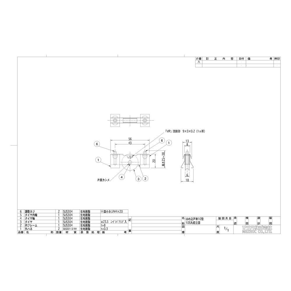 取替用戸車 はめ込み戸車 段差 10S 丸 15513