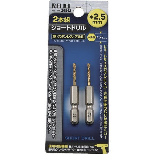 【CAINZ-DASH】イチネンアクセス ツール事業部 2本組 六角軸ショートドリル 2.5mm 26842【別送品】