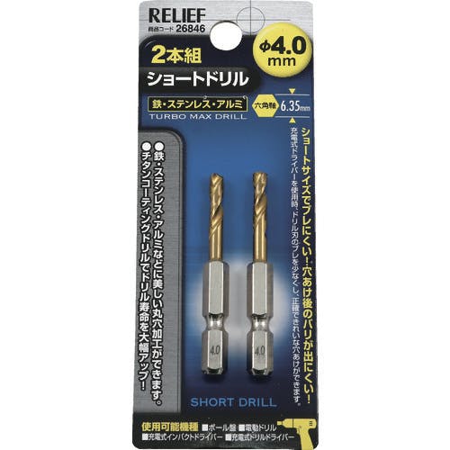 【CAINZ-DASH】イチネンアクセス ツール事業部 2本組 六角軸ショートドリル 4.0mm 26846【別送品】