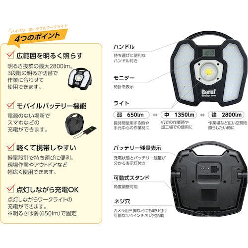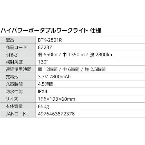 【CAINZ-DASH】イチネンアクセス ツール事業部 BTK-2801R ハイパワーポータブルワークライト 87237【別送品】