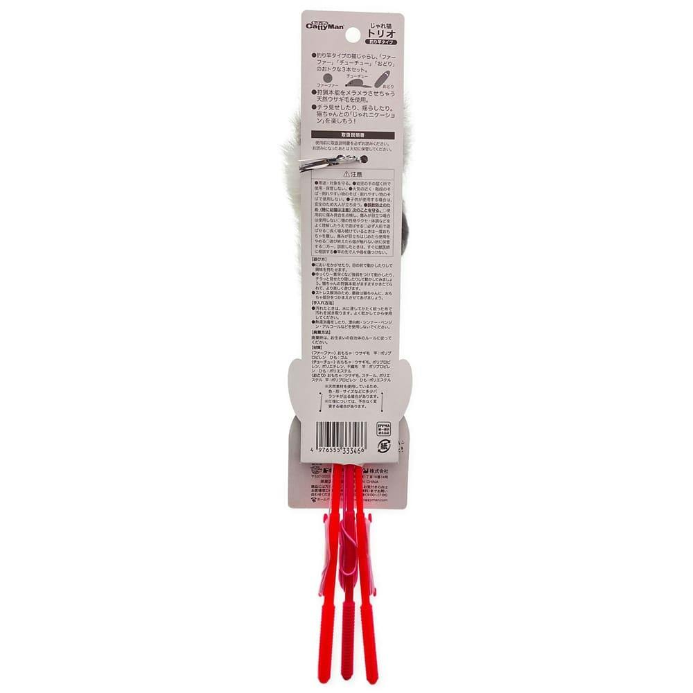 ●釣り竿タイプの猫じゃらし、「ファーファ―」「チューチュー」「おどり」のおトクな3本セット。●狩猟本能をメラメラさせちゃう天然ウサギ毛を使用。●チラ見せしたり、揺らしたり。猫ちゃんとの「じゃれニケーション」を楽しもう!