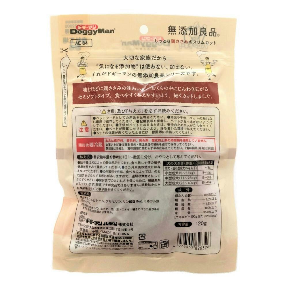 ドギーマン 無添加良品 しっとり鶏ささみのスリムカット セミソフト 全犬種用スナック 120g