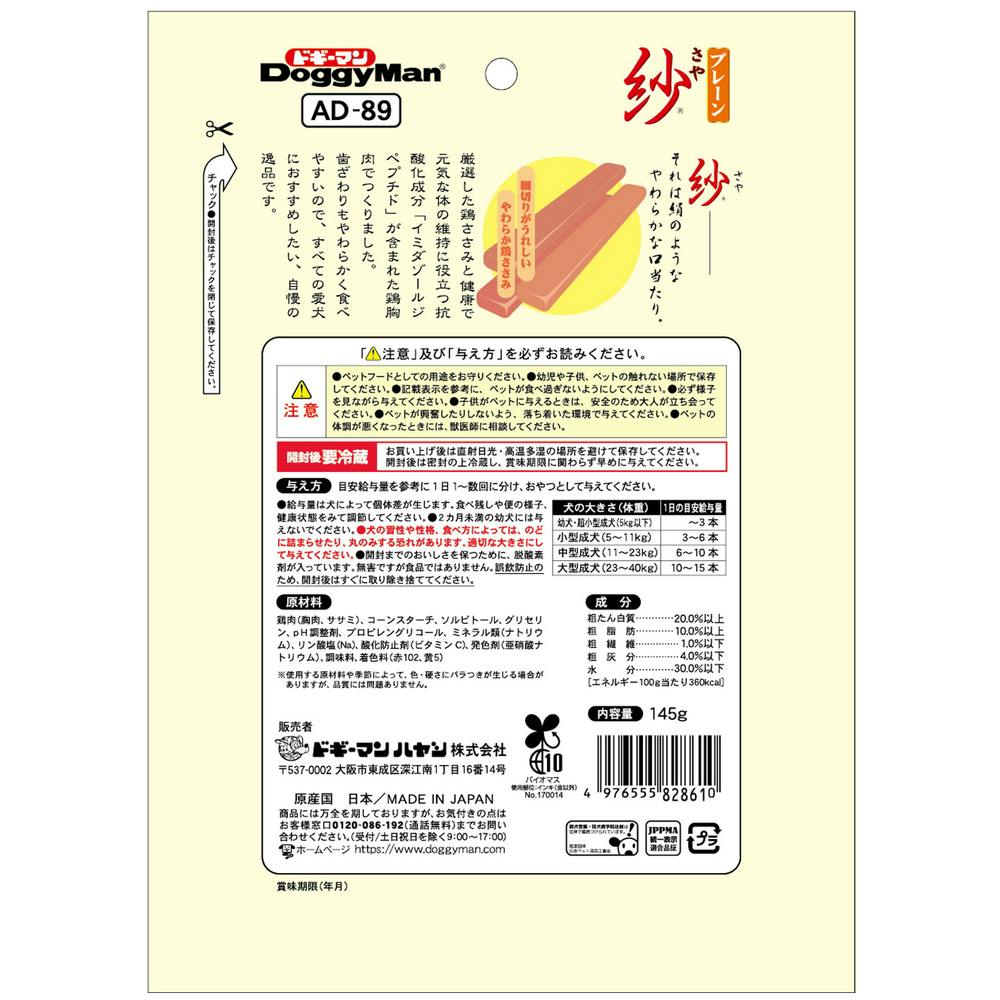 鶏肉(胸肉、ササミ)、コーンスターチ、ソルビトール、グリセリン、pH調整剤、プロピレングリコール、ミネラル類(ナトリウム)、リン酸塩(Na)、酸化防止剤(ビタミンC)、発色剤(亜硝酸ナトリウム)、調味料、着色料(赤102、黄5)