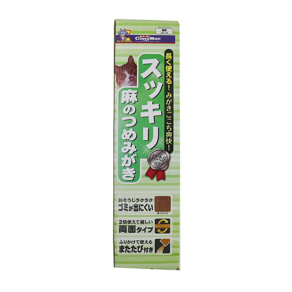 ・圧縮したダンボールの芯材をジュート麻布で包んだツメミガキ。またたびの粉付き。・ジュート麻布を使用し、ゴミが出にくく長持ちする。・またたびの粉付きで猫ちゃんに興味を持たせるのに便利。
