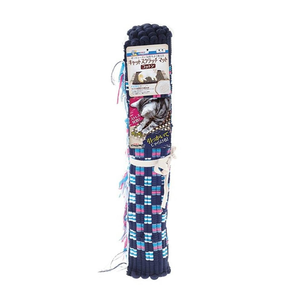 広げても、巻いたままでも使えるフリルが楽しい猫用ラグマット。爪とぎ、くつろぎ、お遊びに。年中使える。