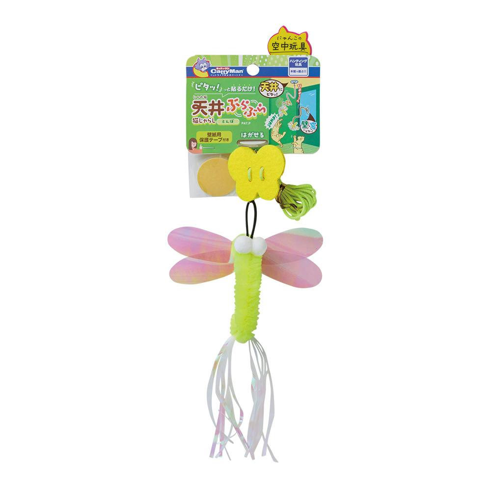 とんぼがお部屋で飛び回る!ゴム紐で吊るす猫じゃらしです。 捕まえても捕まえてもぶっ飛びながら逃げていくので、必死に追いかけて遊ぶ猫ちゃんの可愛い姿が見られます。 糊残りしない、専用の粘着パッドでお部屋の壁や窓、天井に取り付け可能です。