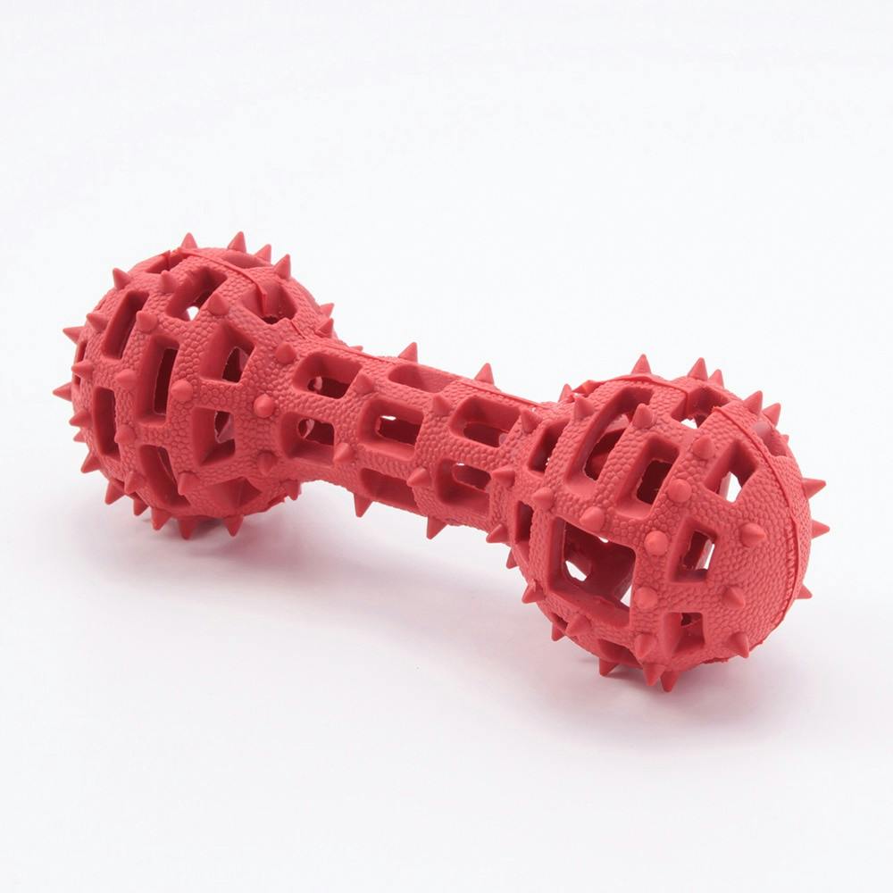 小さなトゲが歯と歯茎をマッサージし、編み構造の噛みごたえ、おやつを入れる事も出来ます。