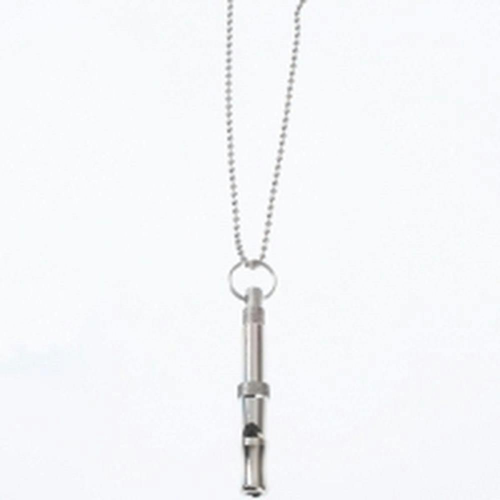 ●首から下げられる、ネックレスチェーンつきのおしゃれな犬笛。●愛犬にはよく聞こえる、高周音波を使った犬笛。●肉声よりも一定で、安定した合図を遠い距離まで伝えることができる。●ホイッスルで愛犬に意思を伝える。道具が出す、一定の音を使ってトレーニングできる。