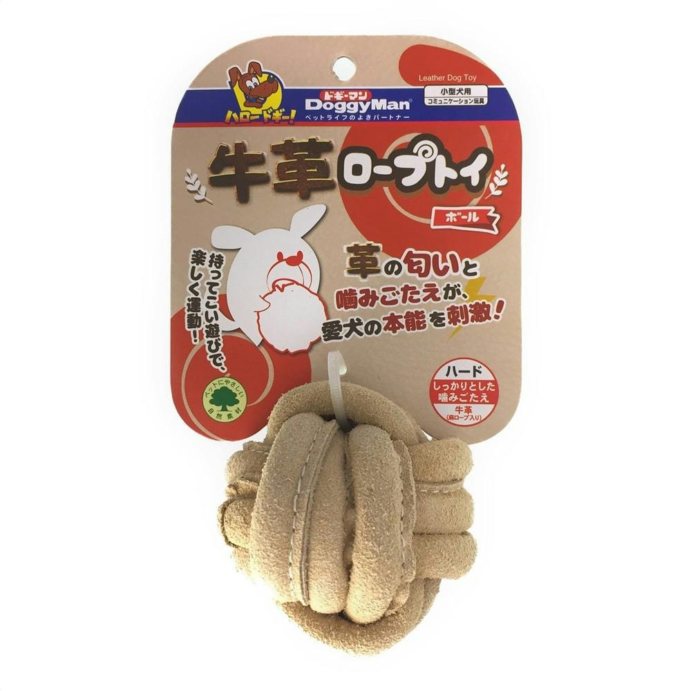牛革の匂いと噛みごたえが愛犬を魅了するボール型のおもちゃ。