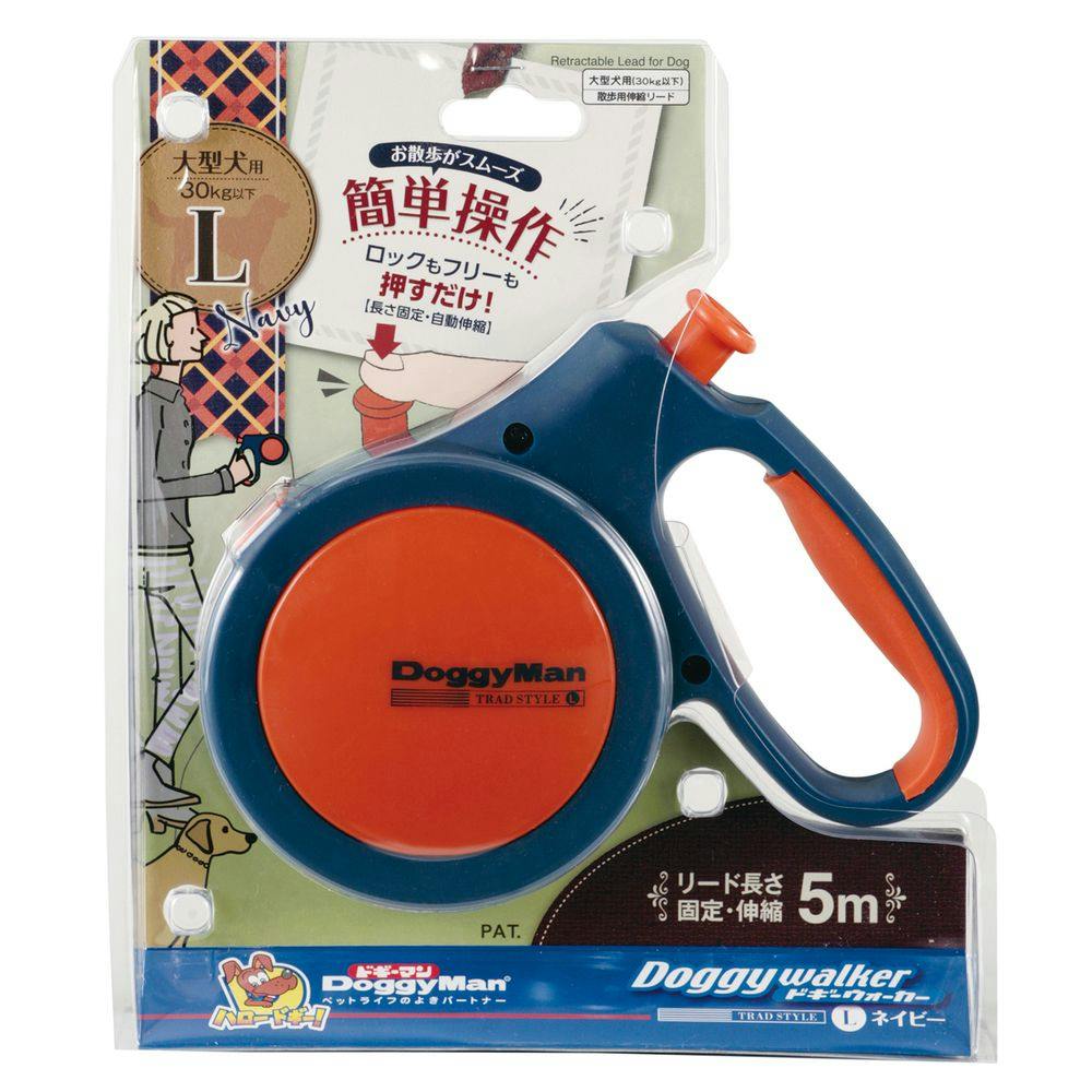 ・体重30kg以下の大型犬用。・丸ヒモ5mの伸縮リール式散歩用リード。・操作はボタン1つで、簡単!押してロック!押してフリーで使いやすい!・握りやすくすべりにくいハンドル部ラバーカバー。