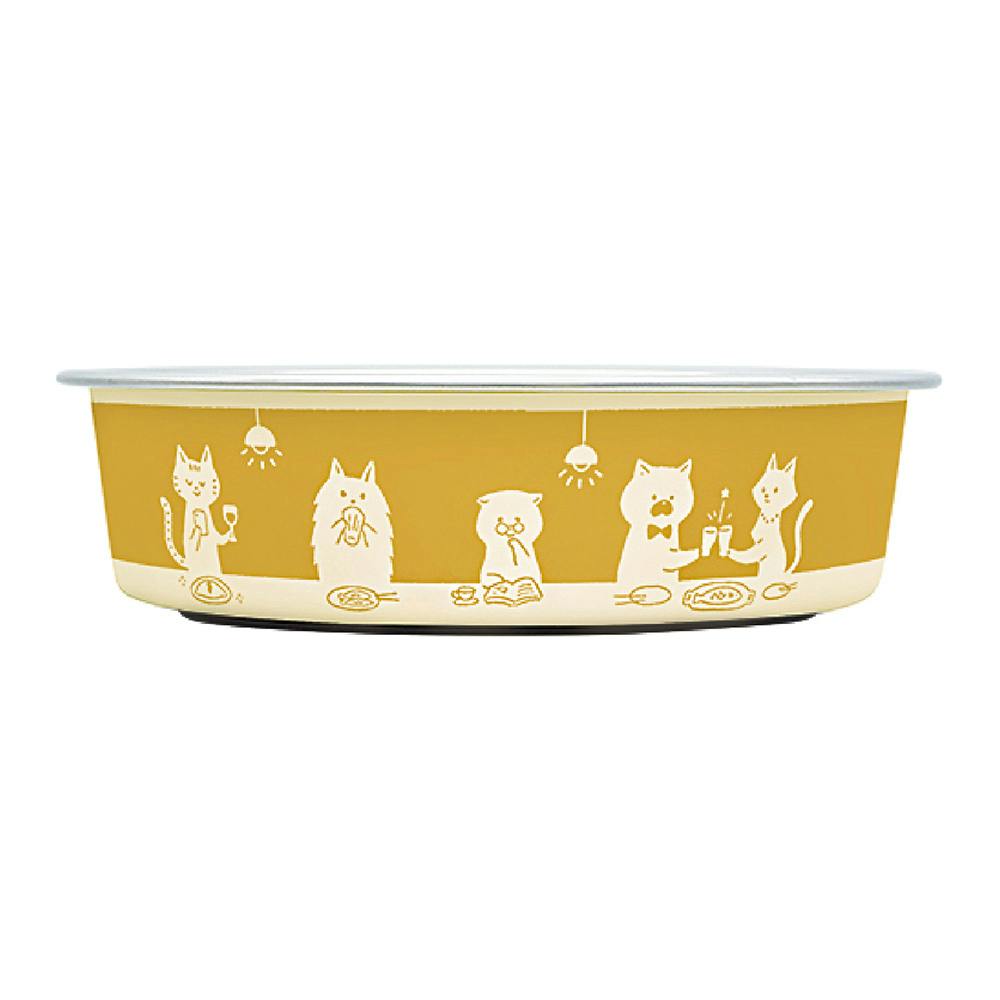 ステンレスの外側をプラスチックで覆った猫用の食器です。 大人気シリーズ「ごはんにゃわん」に可愛いにゃんこ柄が新登場しました。 滑り止めゴム付きで滑りにくく、床を傷つけません。 アメリカの大衆食堂「ダイナー」で陽気に楽しいお食事をイメージしました。