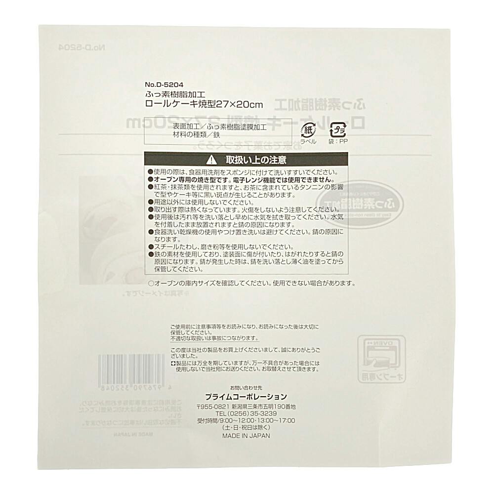 ●ふっ素樹脂加工●ロールケーキ 焼型●27×20cm●お家でお菓子をつくろう。●こびりつきにくい表面加工●オーブン専用