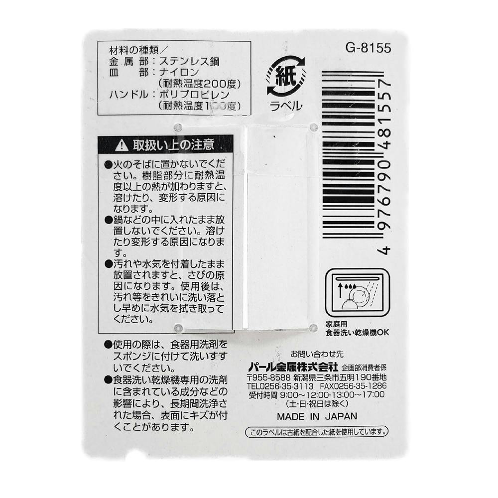 ●金属部/ステンレス鋼 ●皿部/ナイロン ●ハンドル/ポリプロピレン