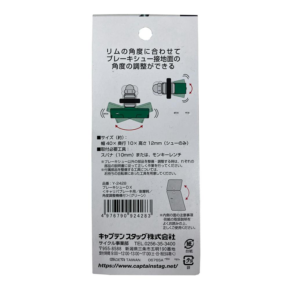 キャプテンスタッグ CAPTAIN STAG ブレーキシューDX キャリパ ブレーキ用 耐摩耗 グリーン Y-2428