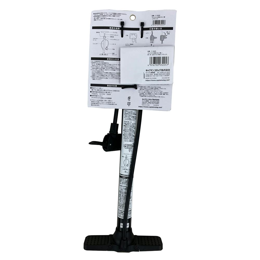 キャプテンスタッグ CAPTAIN STAG コンパクト空気入れ 鉄/デュアル口金/英・米・仏式バルブ対応 ブラック Y-3225