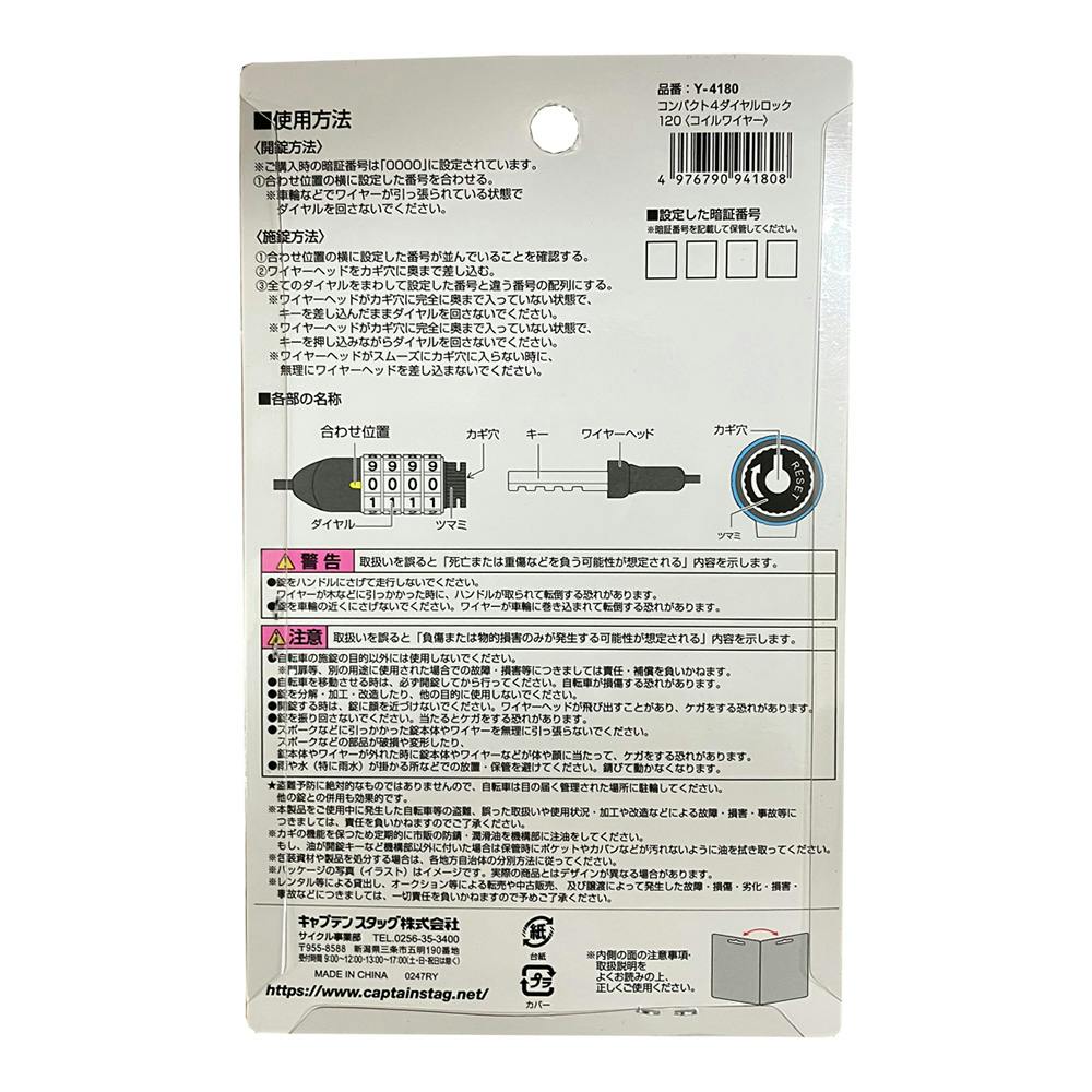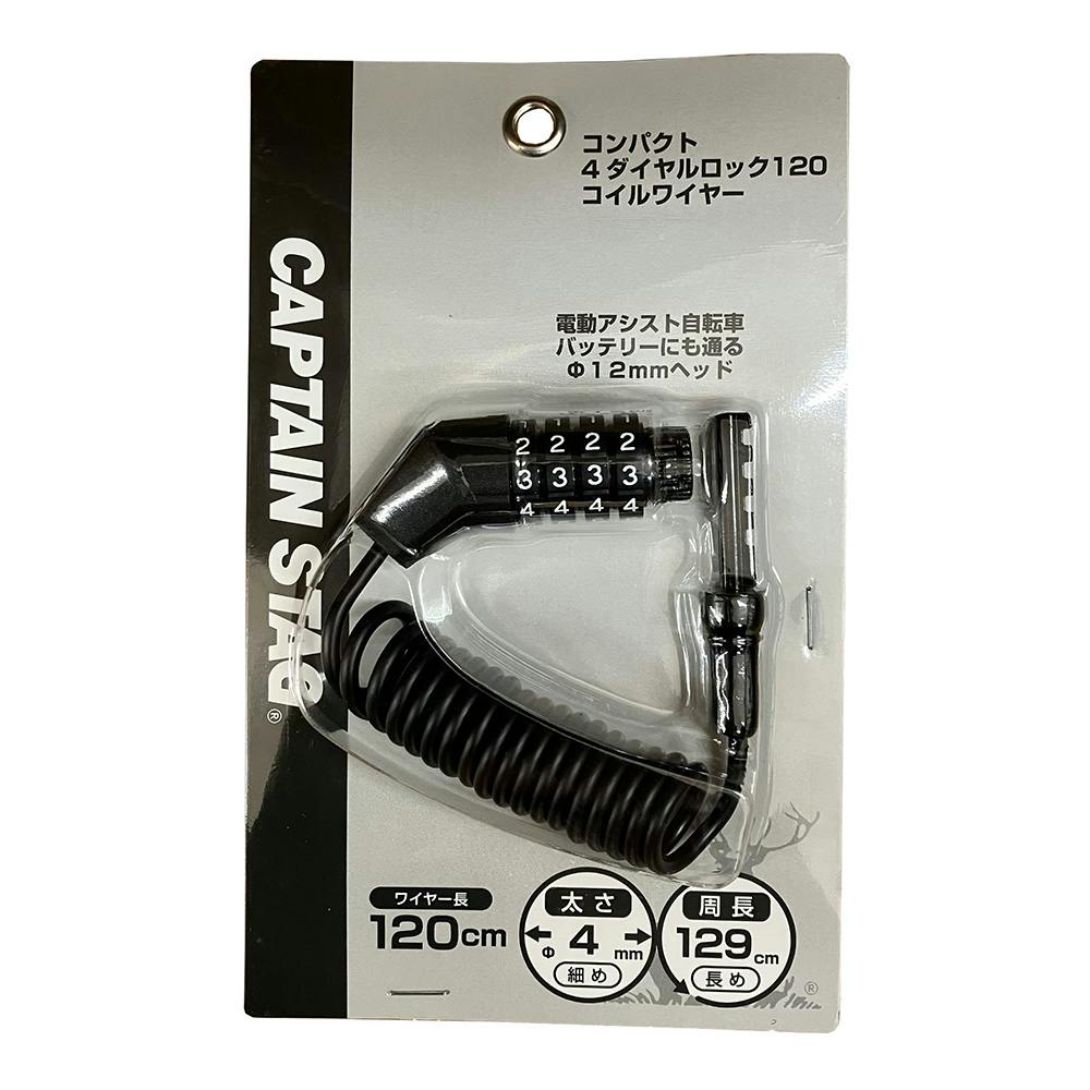 キャプテンスタッグ CAPTAIN STAG コンパクト 4ダイヤルロック120 コイルワイヤー ブラック Y-4180
