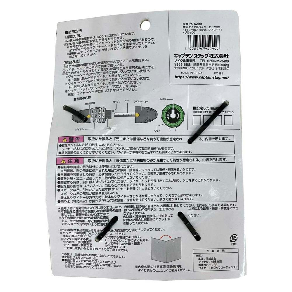 キャプテンスタッグ CAPTAIN STAG 極太4ダイヤルワイヤーロック90 ブラック Y-4299