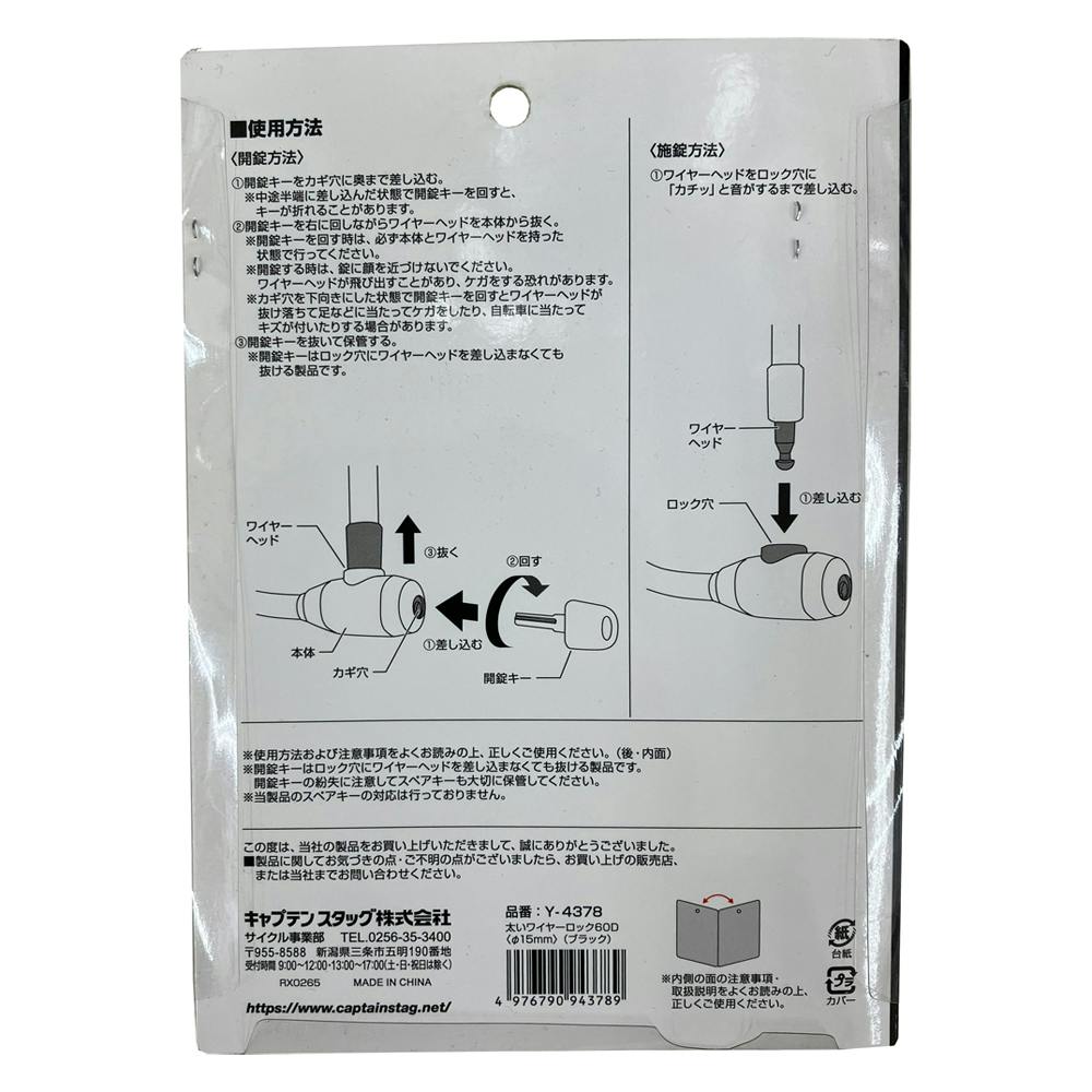 キャプテンスタッグ CAPTAIN STAG 太いワイヤーロック60 ブラック Y-4378