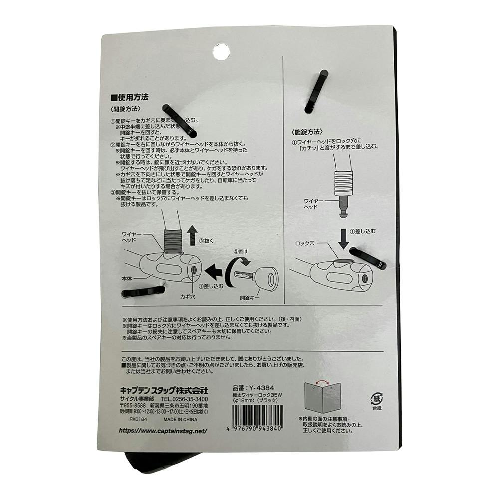 CAPTAIN STAG 極太ワイヤー錠 太さ18mm 周長45cm Y-4384