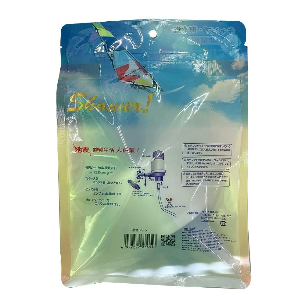 電池のいらない簡易的なポンプになります。シャワーと蛇口の取り付けが簡易的でアウトドアやレジャー、災害時にとても使いやすいアイテムです。水缶専用のポンプですので50mm口径の物をご使用ください。