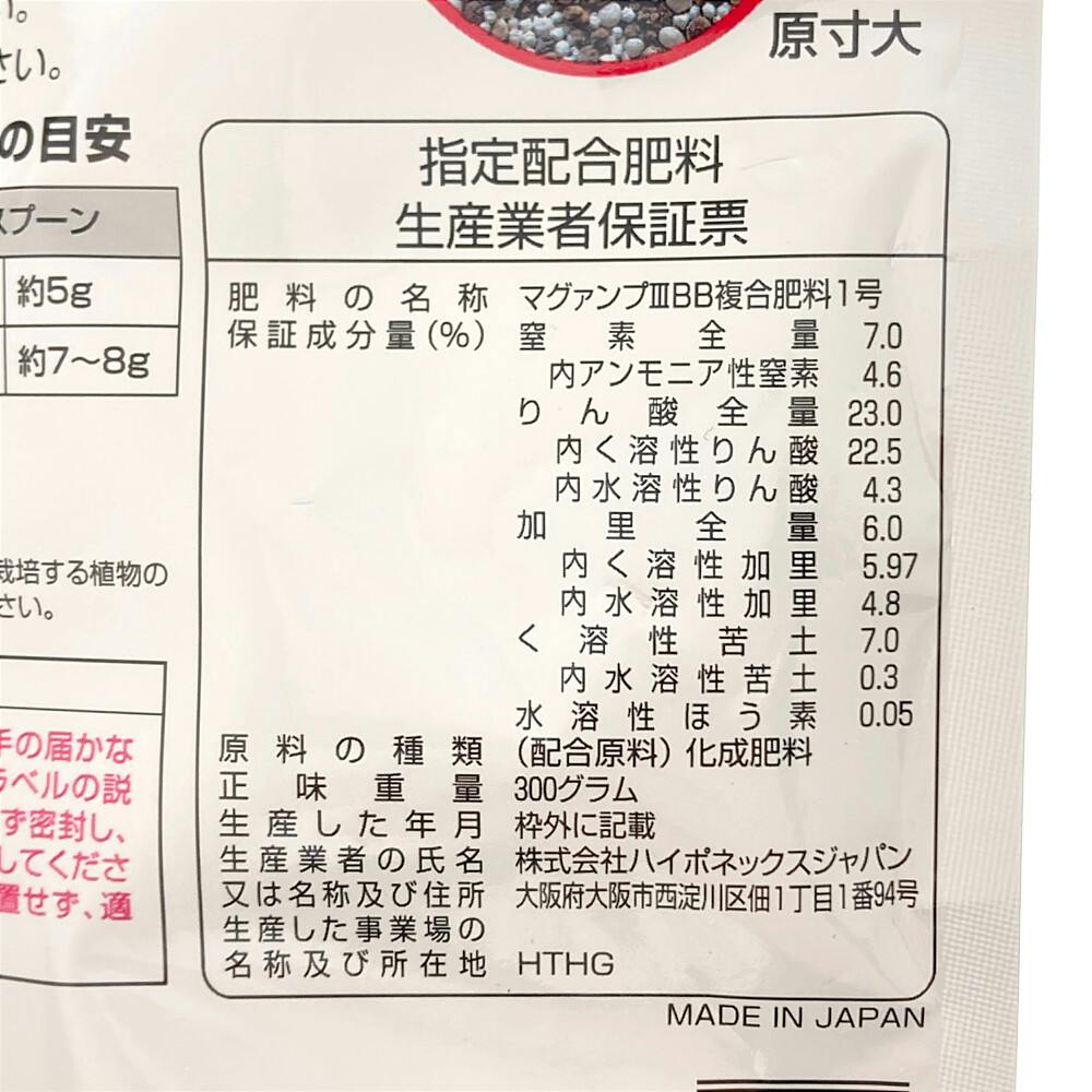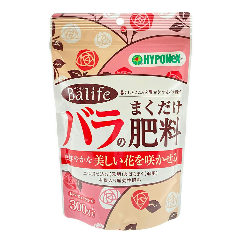 バラの生育に必要な成分をバランス良く配合し、さらに有機成分を配合した緩効性肥料です。魚粕類を主体とした有機成分を配合し、微量要素やアミノ酸を含み、花や葉を色つや良く仕上げる効果があります。