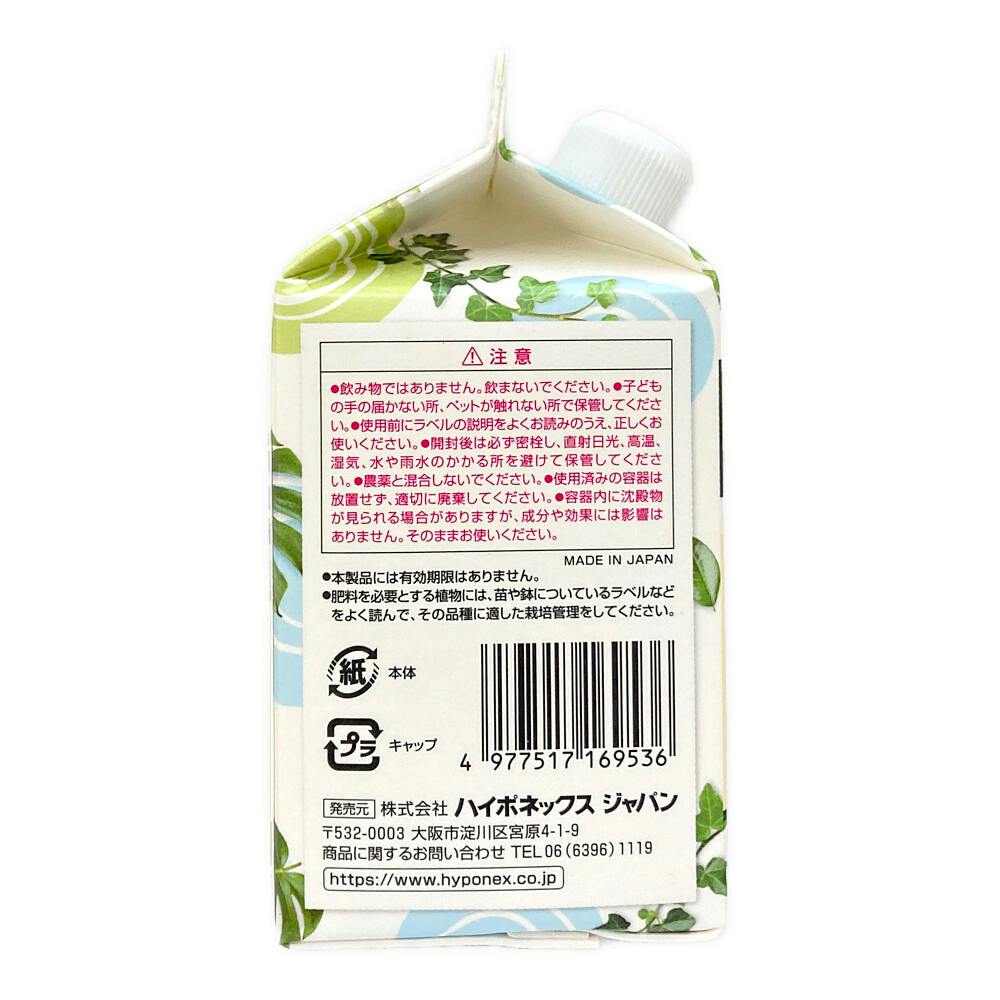 室内で楽しむインテリアグリーン向けの活力液です。室内でインテリアとして楽しむ小さいサイズの観葉植物や多肉植物などに向いてます。各種の活力ミネラル成分を配合。葉色を良くし、元気でイキイキと育てます。