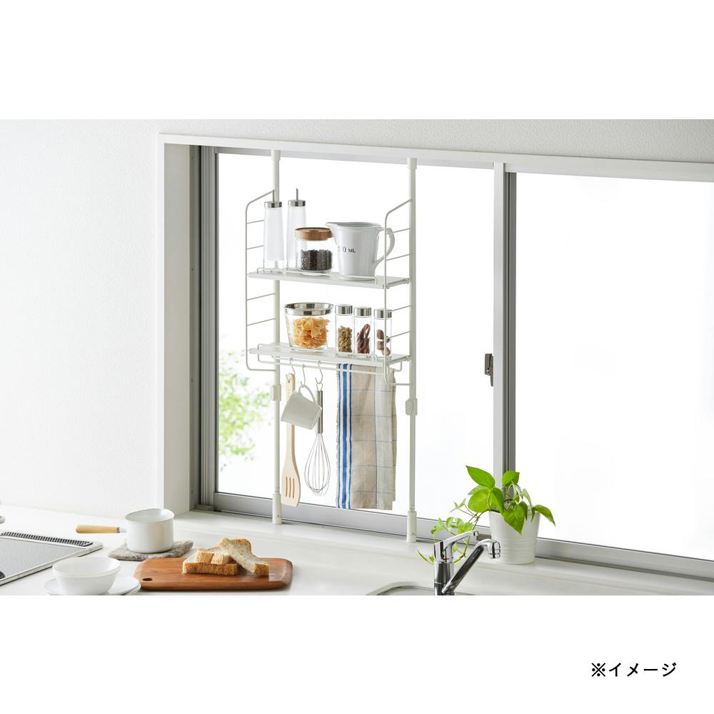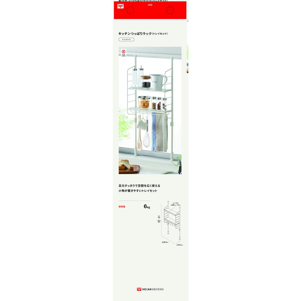 キッチンつっぱりラック トレイ付 マッドホワイト