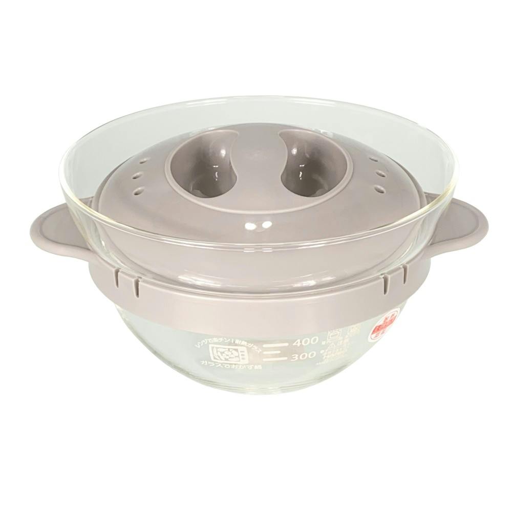 電子レンジで簡単調理。耐熱ガラス製なので、調理の様子は見えます。