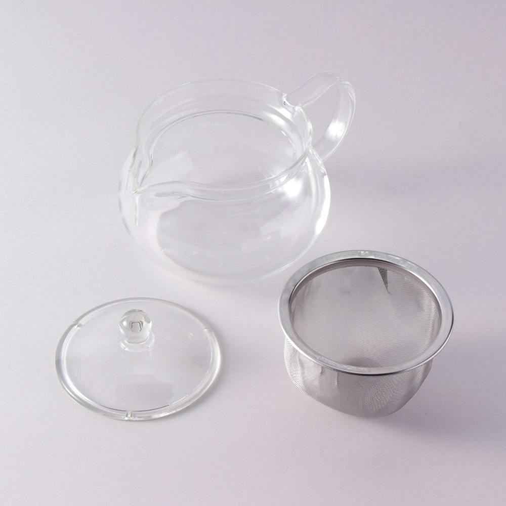 ガラスで出来ているので、お茶の色合いが目で楽しめて、飲み頃がわかる急須。日本茶、中国茶、紅茶やハーブティーとお茶の種類を問わず使えるシンプルなデザインです。フタのツマミは持ちやすい丸形状。本体は耐熱ガラスで色移りや匂い移りしにくい素材です。