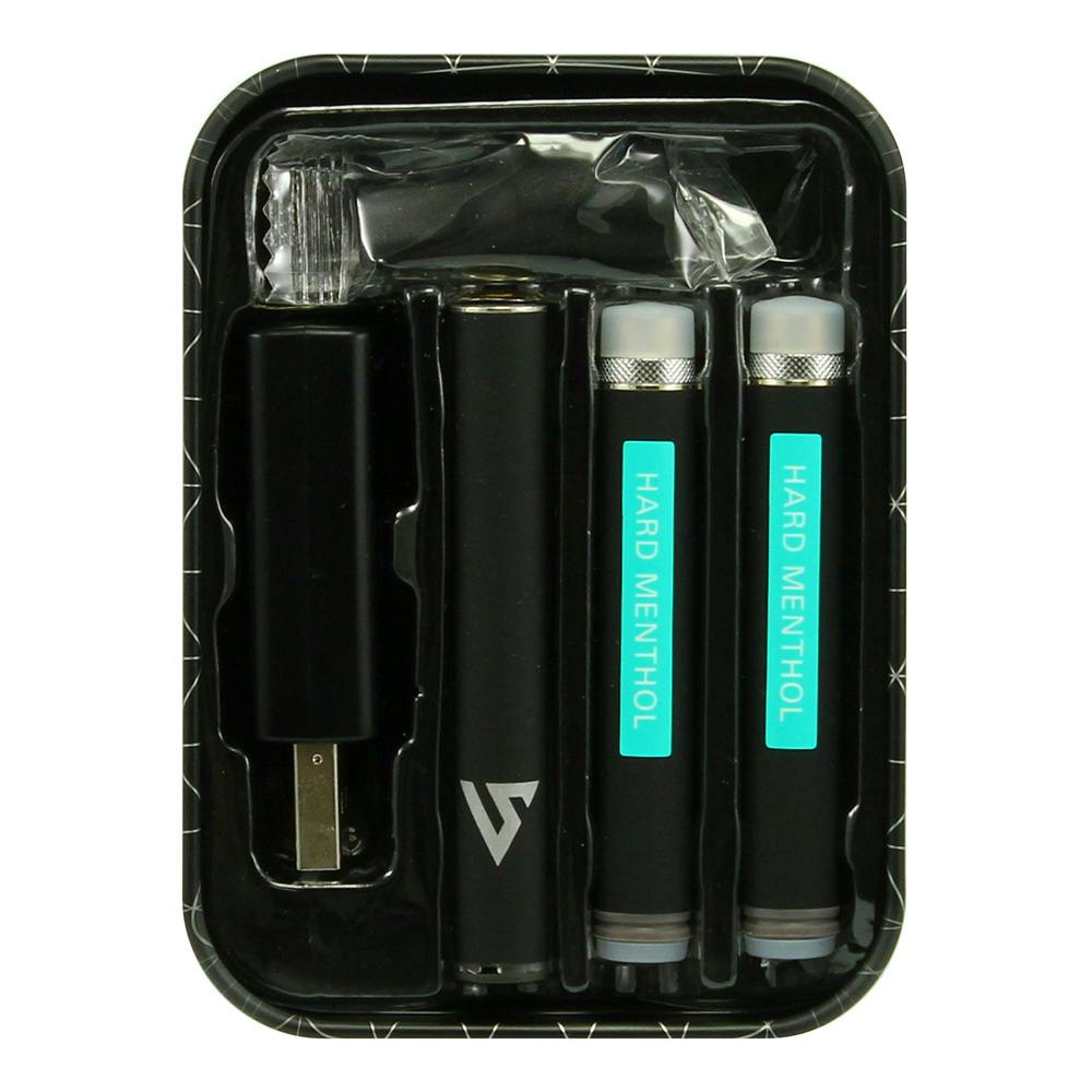 本体、リキッド入りアトマイザー2個、USB充電器、シリコンマウスピース、缶ケース