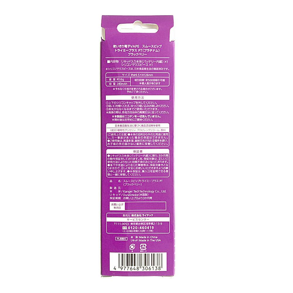 1.上下のシリコンキャップを外してください2.吸い口を軽くくわえ、ゆっくり吸い込みお楽しみください3.蒸気が出なくなるまでご使用いただけます※廃棄の際は、各地方自治体の廃棄区分に従ってください※本製品はニコチンを一切含んでいません※開封後はお早めにご賞味ください