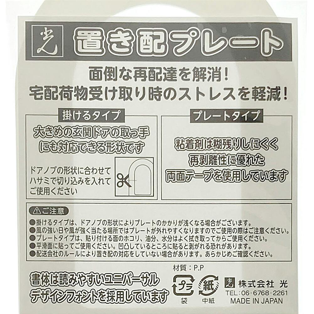 ●掛けるタイプ/・大きめの玄関ドアの取っ手にも対応できる形状です・ドアノブの形状に合わせてハサミえ切り込みを入れてご使用ください。●プレートタイプ/粘着は糊残りしにくく再剥離性に優れた両面テープを使用しています。