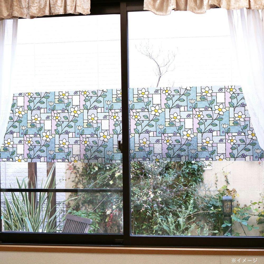 貼ってはがせる窓フィルム ステンドグラス窓飾りシート パープル GLS-4657 丈46cm×長さ90cm巻