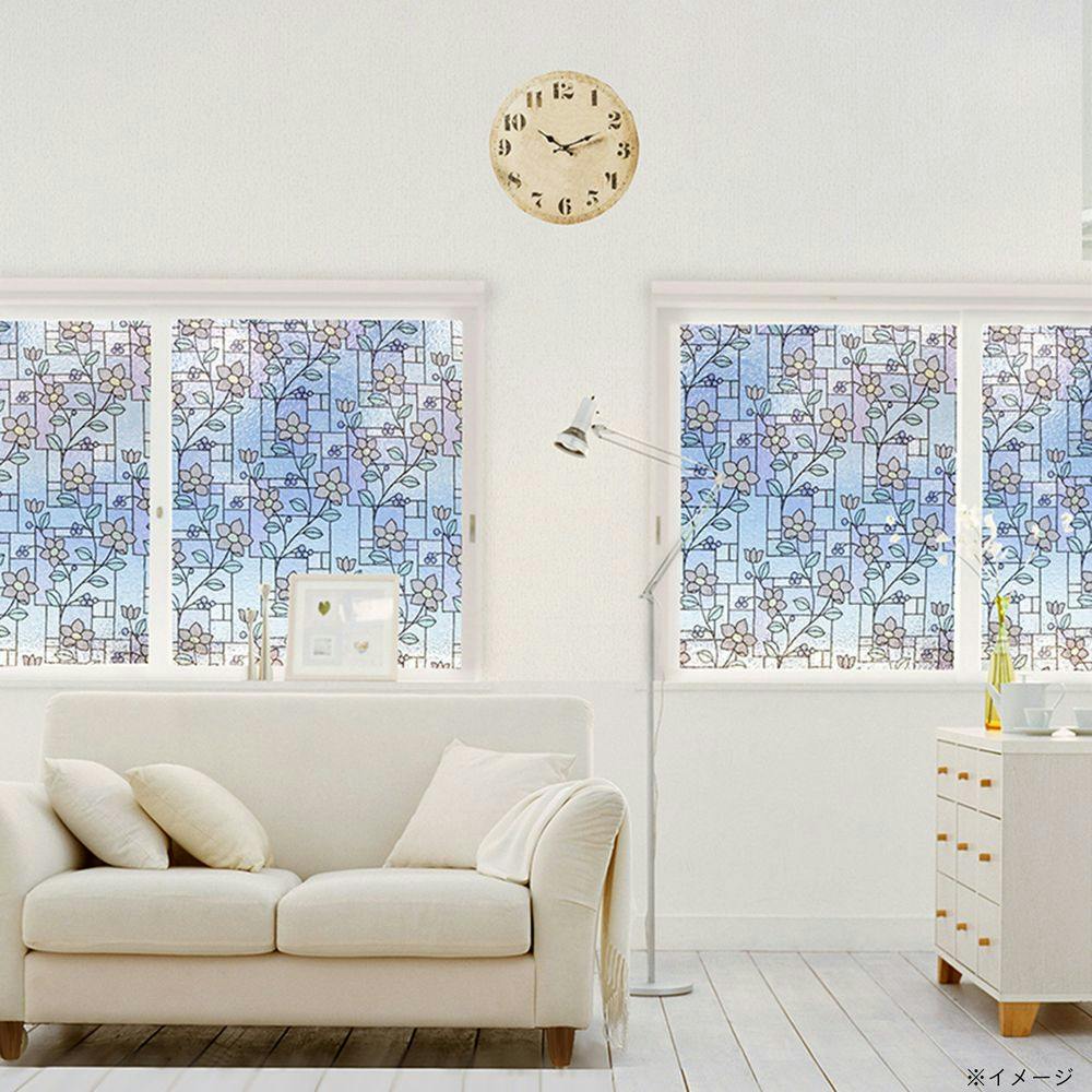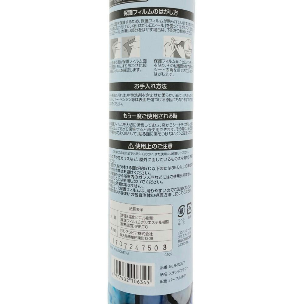 貼ってはがせる窓フィルム ステンドガラス柄窓飾りシート パープル GLS-9257 丈92cm×長さ90cm巻