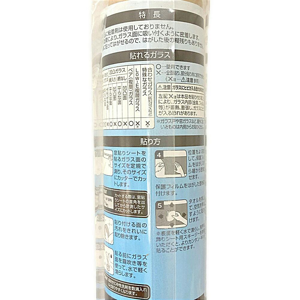 ●本製品のに粘着剤は使用しておりません ●吸盤効果により、ガラス面に吸い付くように密着します ●簡単に貼ってはがせるので、はがした後の糊残りもありません ●ペアガラス・網入りガラスOK! ●UVカット99% ●目隠し効果 など