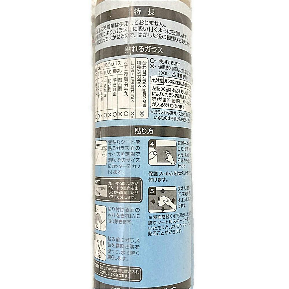 ●本製品のに粘着剤は使用しておりません ●吸盤効果により、ガラス面に吸い付くように密着します ●簡単に貼ってはがせるので、はがした後の糊残りもありません ●ペアガラス・網入りガラスOK! ●UVカット99% ●目隠し効果 など