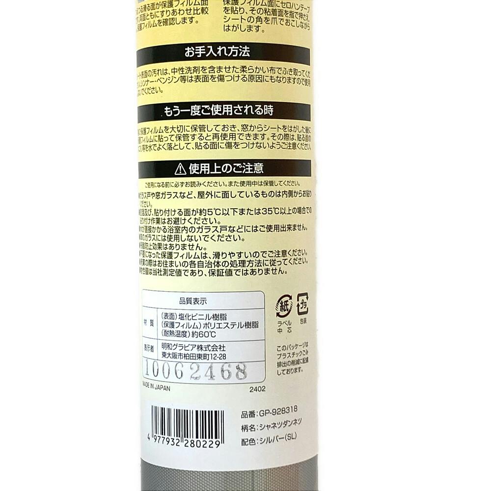貼ってはがせる窓貼りシート 夏の遮熱・冬の断熱 省エネ シルバー GP-928318 丈92×180cm巻