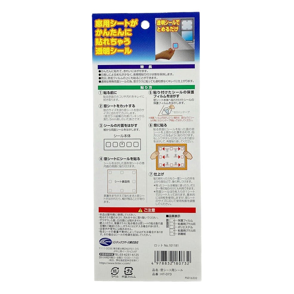 窓用シートがかんたんに貼れちゃう透明シール 4cm×4cm×5枚 2シート入