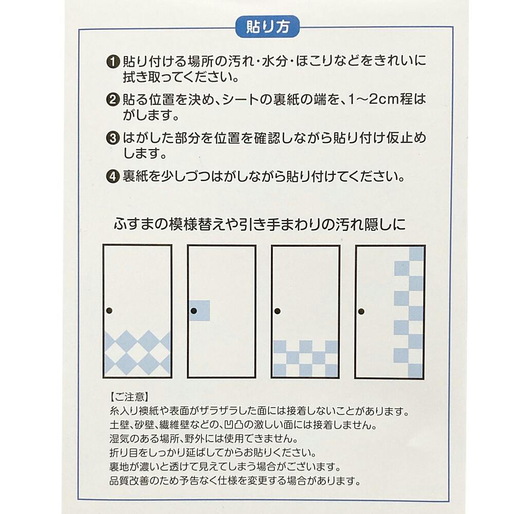 裏紙を剥がして貼るシールタイプの襖紙です。汚れの補修、小さな破れの補修などに最適。