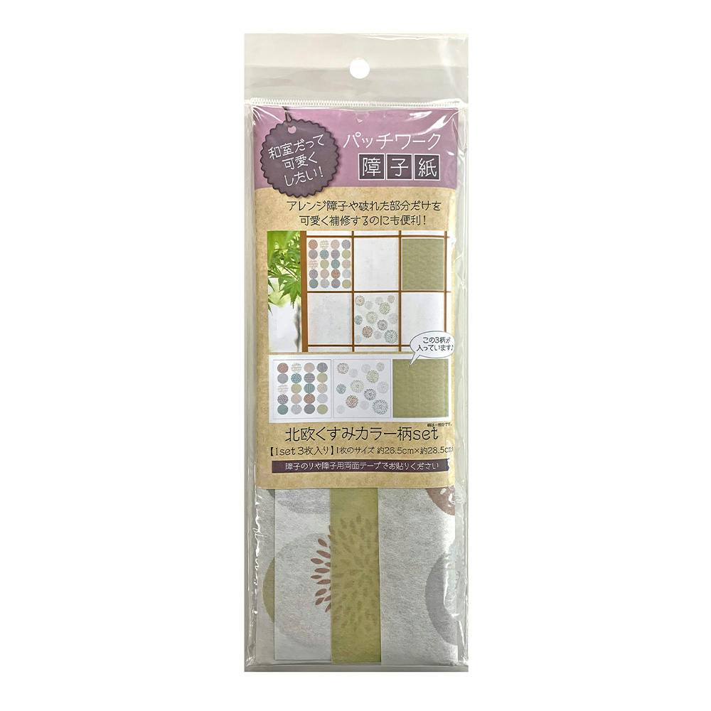 パッチワーク 障子紙 北欧くすみカラー柄SET 26.5cm×28.5cm(1枚のサイズ) 3枚入