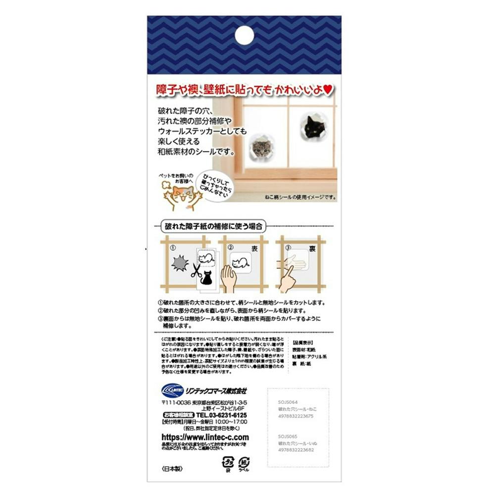 障子襖シール 破れた穴からこんにちはシール いぬ 約20cm×10cm