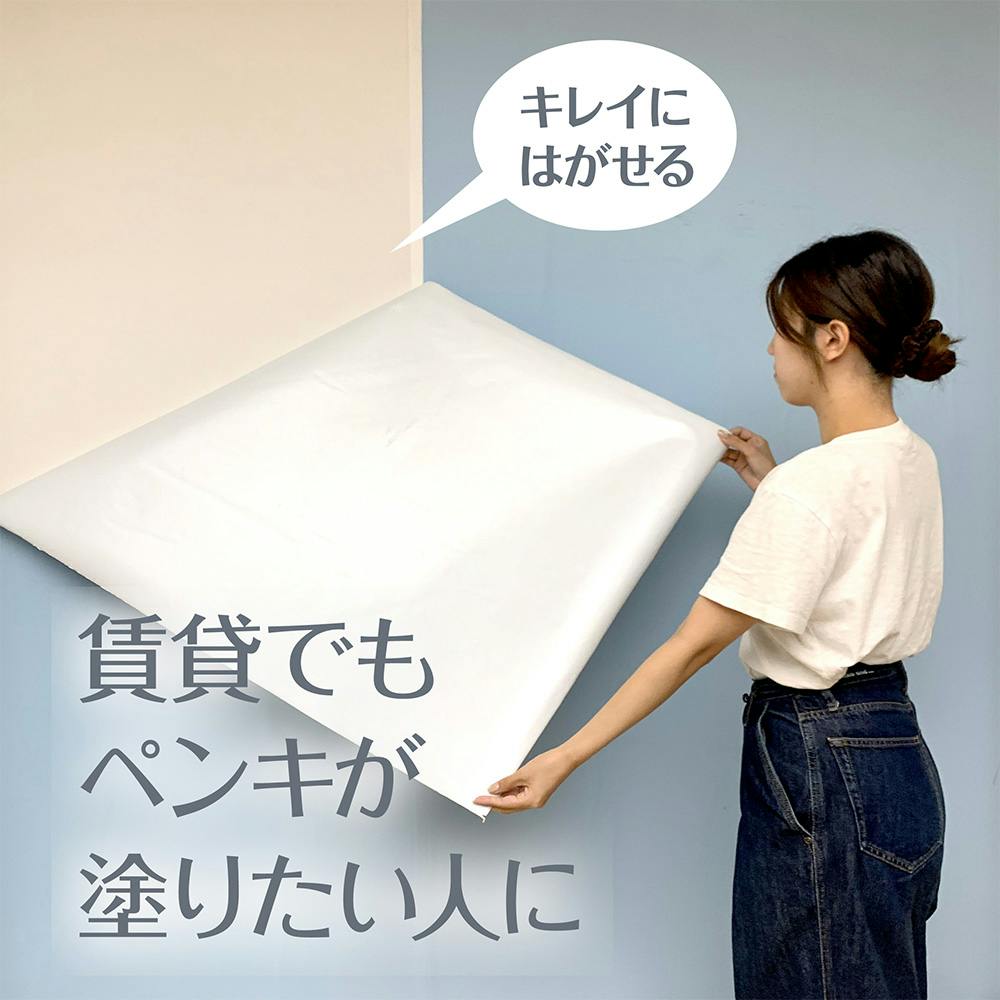 壁紙の上から貼れるペイント下地シートです。塗装したいところに下地として貼れば壁紙を傷めずにペイントができます。