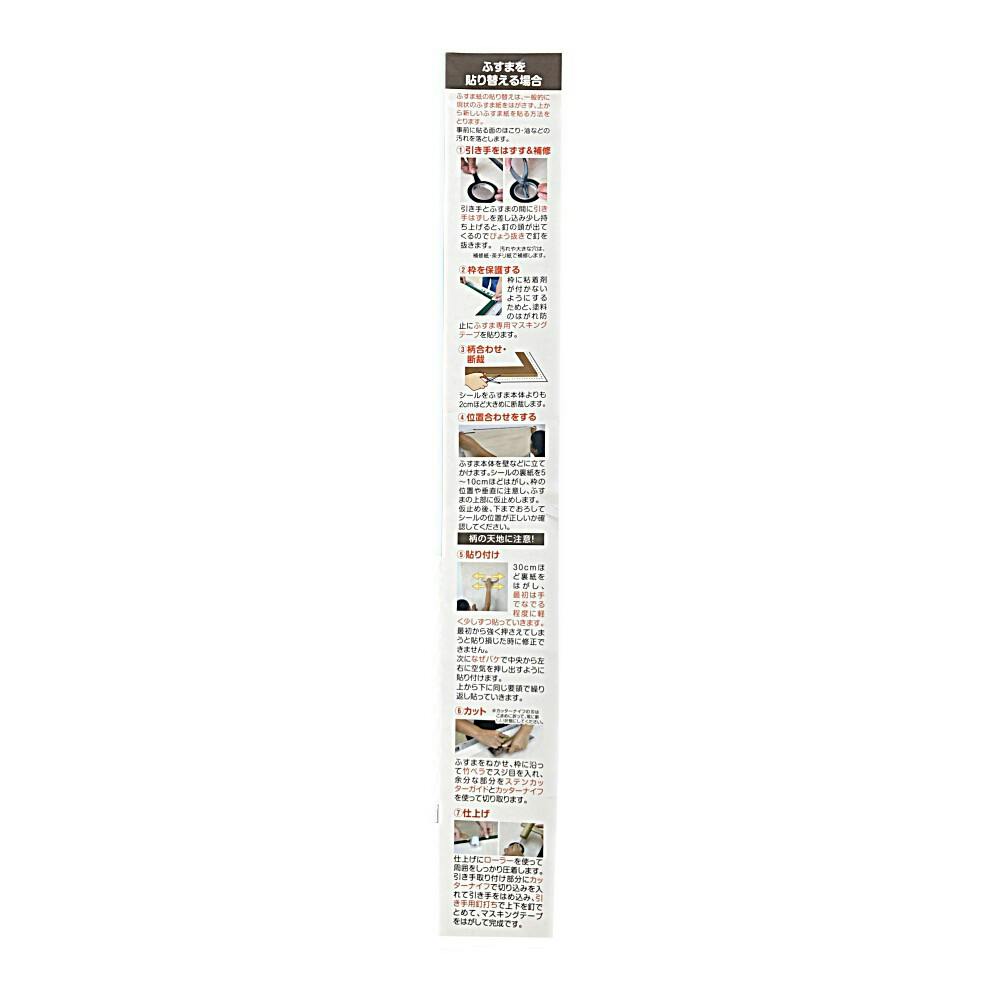 ●なぜパケ又はスムーザー、ステンカッターガイド(定規)、カッターナイフ、ハサミ、ローラー ●ふすま貼り替えに必要な道具/ふすま用マスキングテープ、竹べら、びょう抜き、カナヅチ、引き手はずし、引き手用釘打ち