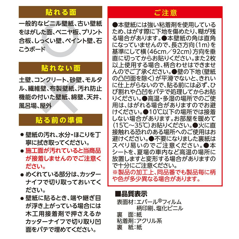 ●強い粘着剤を使用しているのではがす際に下地を傷めたり、糊が残る場合があります。●壁紙の角は直角ではありません。●ひび割れや凸凹(壁紙の凸凹を除く)がある場合はパテで下処理をお願いいたします。●製品の特性上同品番でも製品毎に柄や色が異なる場合がございます。