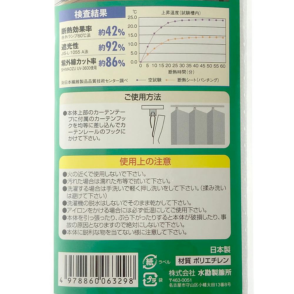 ●カーテンタイプ●付属のカーテンフック(5個)が付いています●本体上部のカーテンテープに付属のカーテンフックを均等に差し込んでカーテンレールのフックにかけて下さい。●断熱効果温度:約10℃●断熱効果率:約42%
