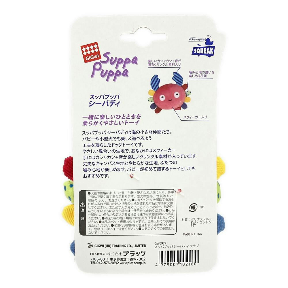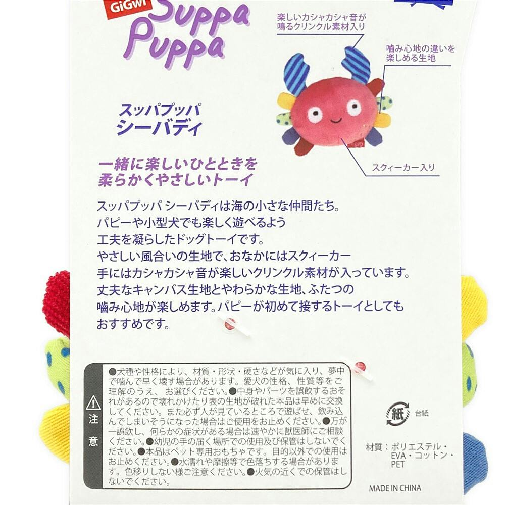 スッパプッパ シーバディは海の小さな仲間たち。 パピーや小型犬でも楽しく遊べるよう工夫を凝らしたドッグトーイです。