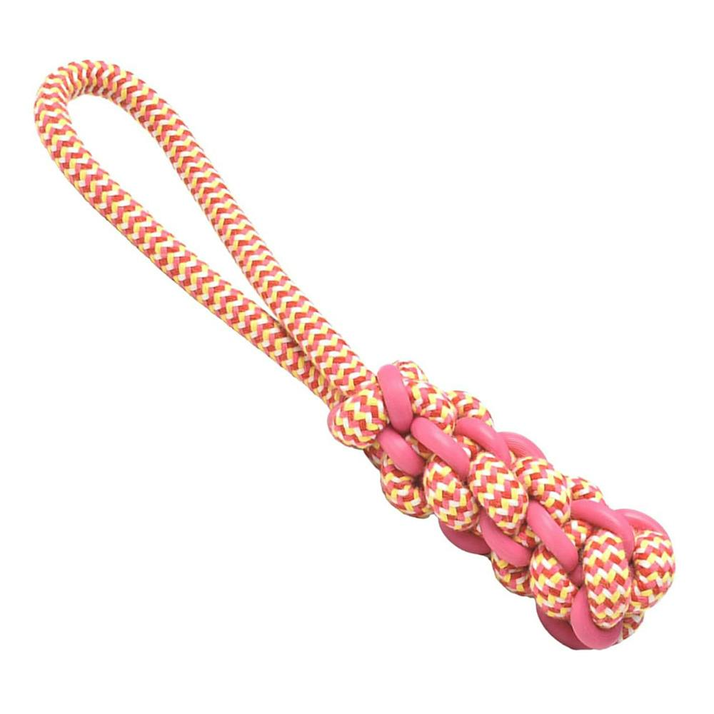 ●デンタルケアができるロープに丈夫で弾力のあるTPE樹脂を編み込んだドッグトーイです。\n●異なる2種類の噛み心地と弾力性があり引っ張りやすいため、はじめての引っ張りっこ遊びにもおすすめです。