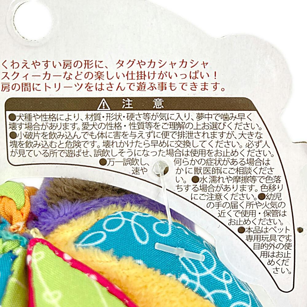 わんちゃんが咥えやすい房形状でできたボール。それぞれの房にはカシャカシャ鳴るクリンクルやピッピ音が楽しいスクィーカー入り。房の間にトリーツを隠したり、引っ張りっこやなげっこして遊んだりできファーストトーイにも最適です。