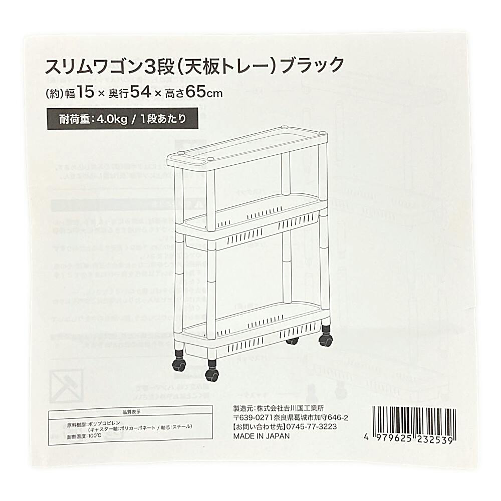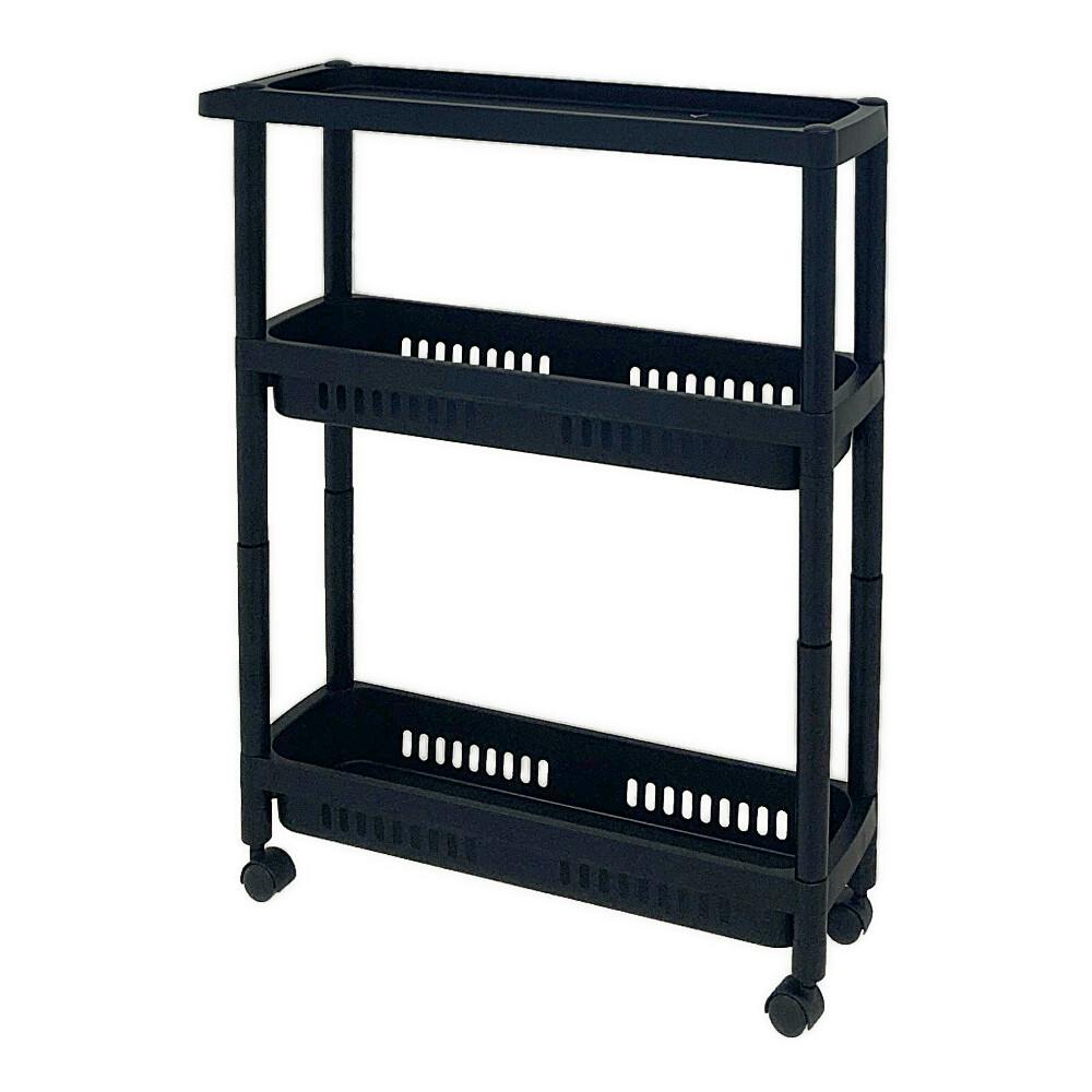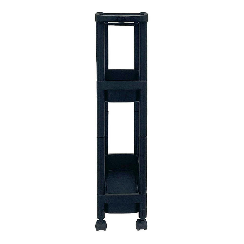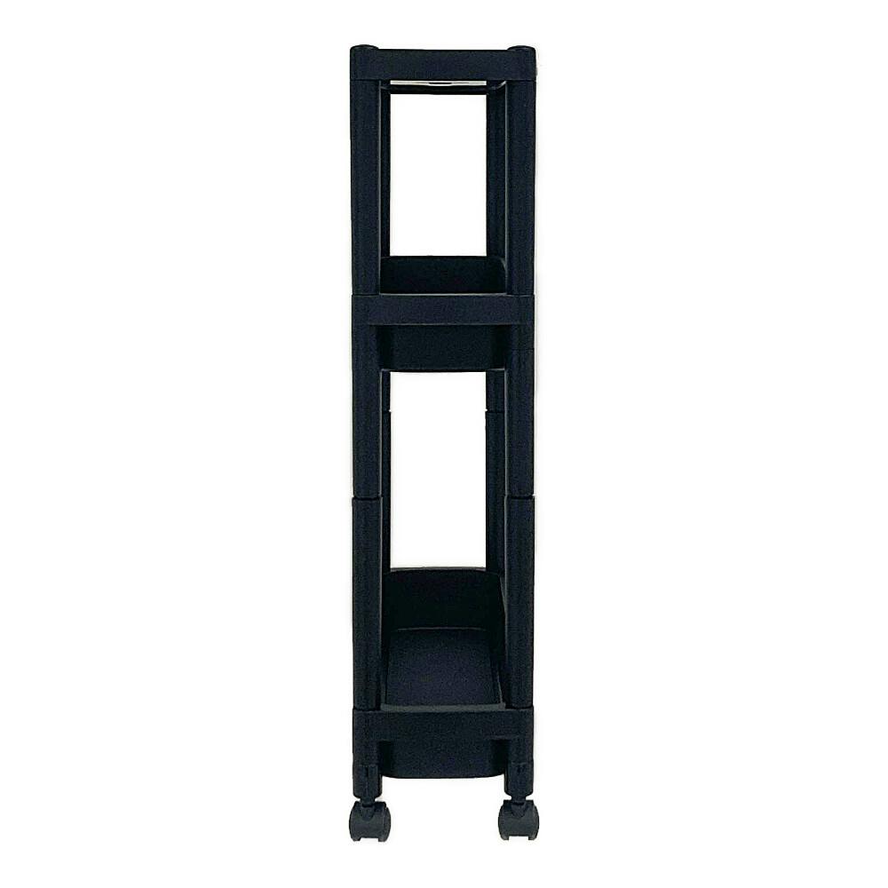 天板トレー付きスリムワゴン3段 ブラック 幅15cm 奥行54cm 高さ65cm