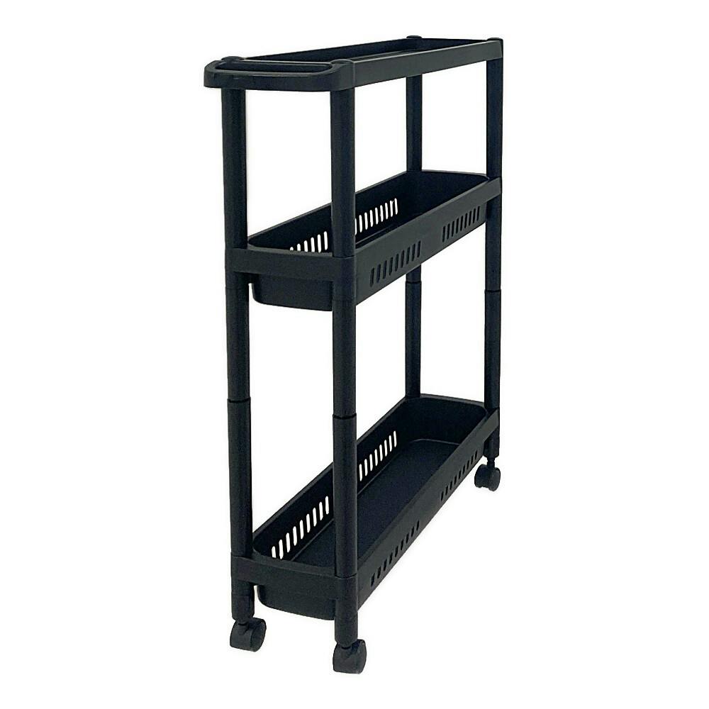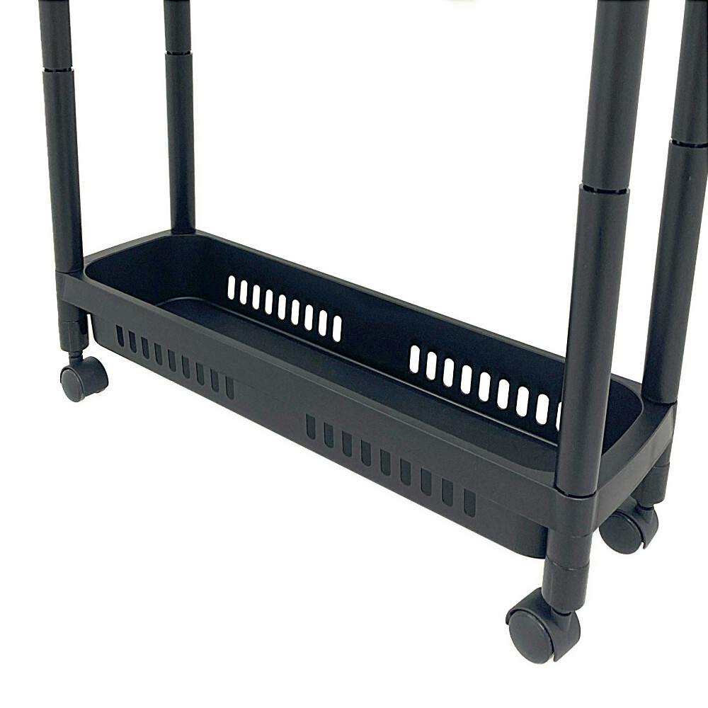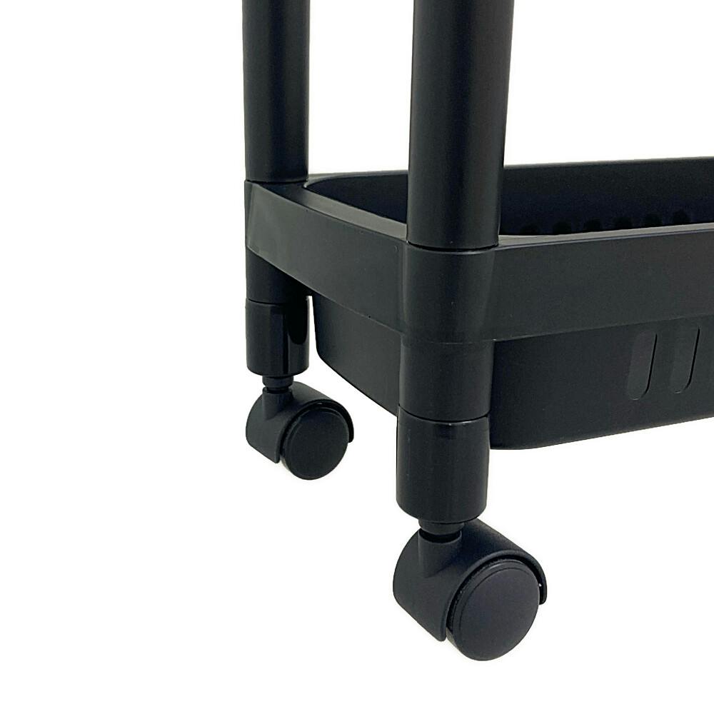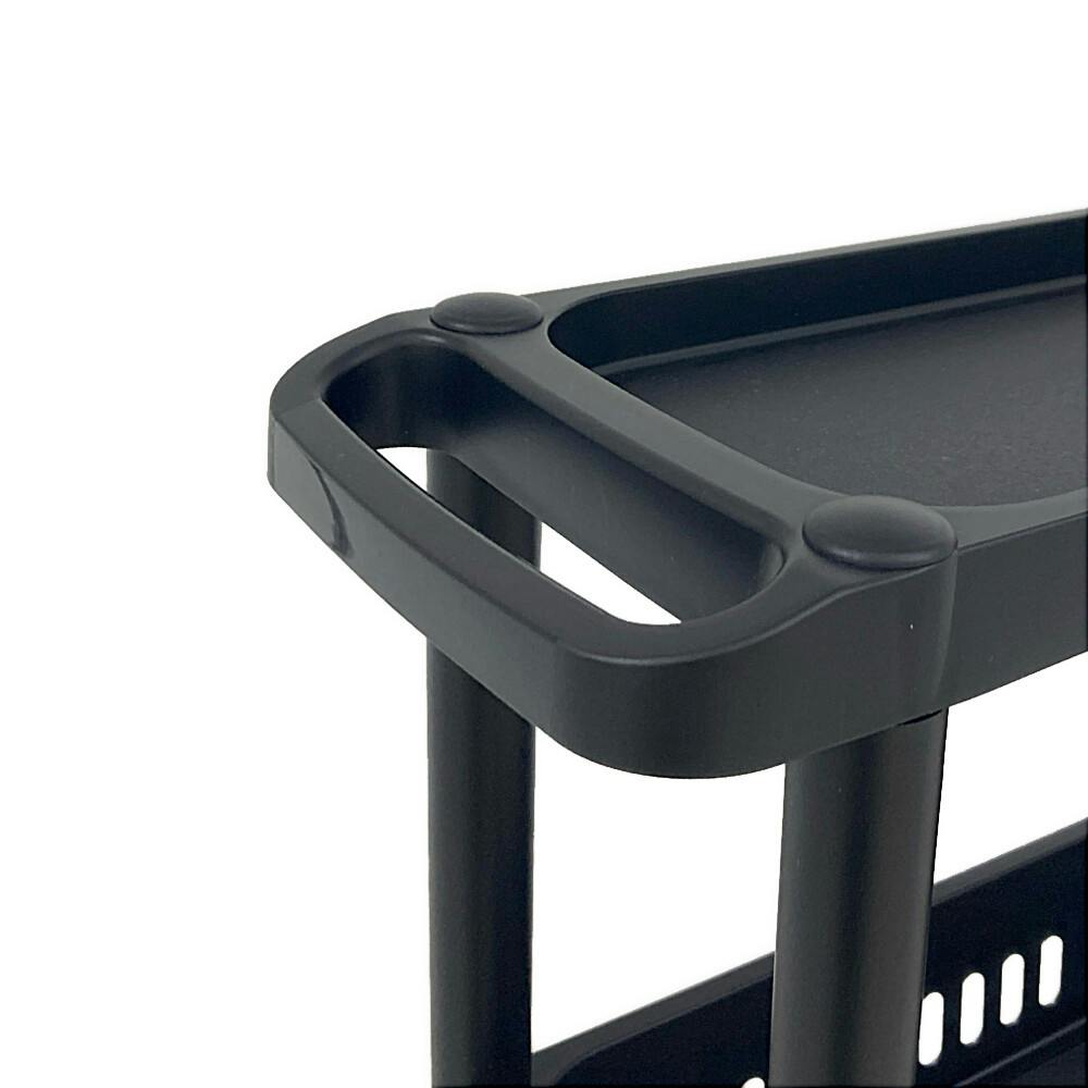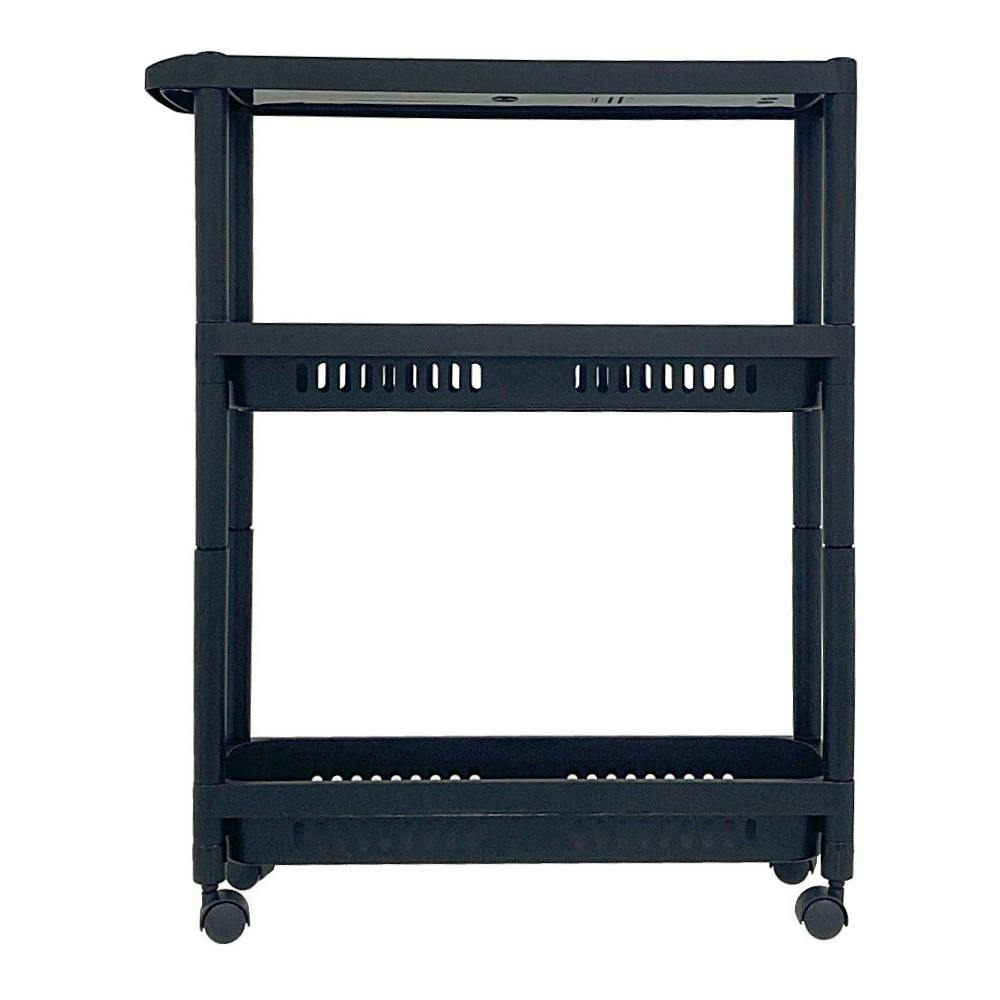 天板トレー付きスリムワゴン3段 ブラック 幅15cm 奥行54cm 高さ65cm